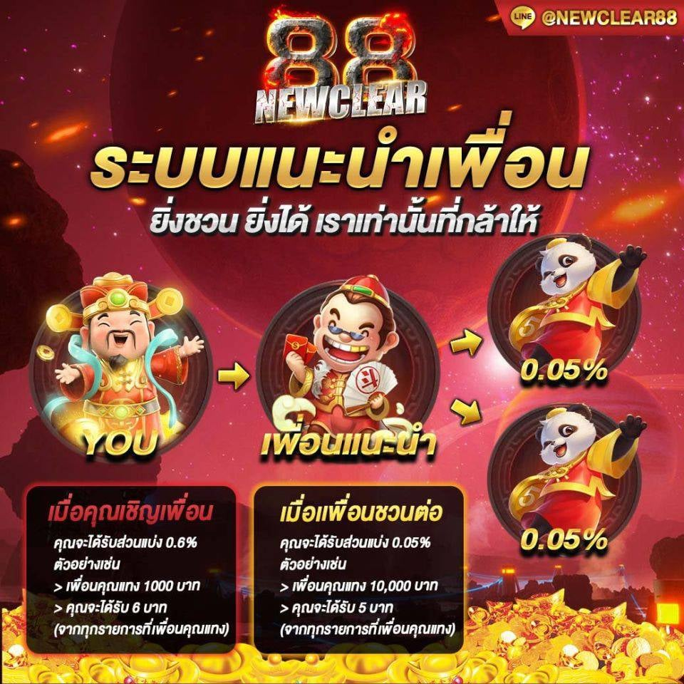 อีกหนึ่งช่องทางสำหรับผู้ที่ต้องการสร้างรายได้จากการใช้งานเว็บ newclear88 คือระบบแนะนำเพื่อน เพียงแชร์ลิงก์ให้เพื่อนสมัครและเริ่มเล่นเกม ผู้แนะนำจะได้รับค่าคอมมิชชั่นแบบอัตโนมัติทันที โดยไม่ต้องดำเนินการอะไรเพิ่มเติม